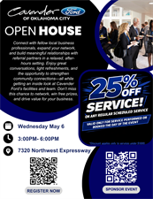 Connect with fellow local business professionals, expand your network, and build meaningful relationships with referral partners in a relaxed, after-hours setting. Enjoy great conversations, light refreshments, and the opportunity to strengthen community connections—all while getting an inside look at Cavender Ford’s facilities and team. Don’t miss this chance to network, win free prizes, and drive value for your business.