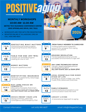 Come to our monthly Positive Aging event at MetroTech (1900 Springlake Drive). This months will be learning about Preventing scams, Securing and Organizing Personal Information.